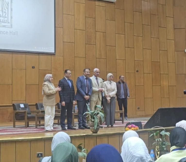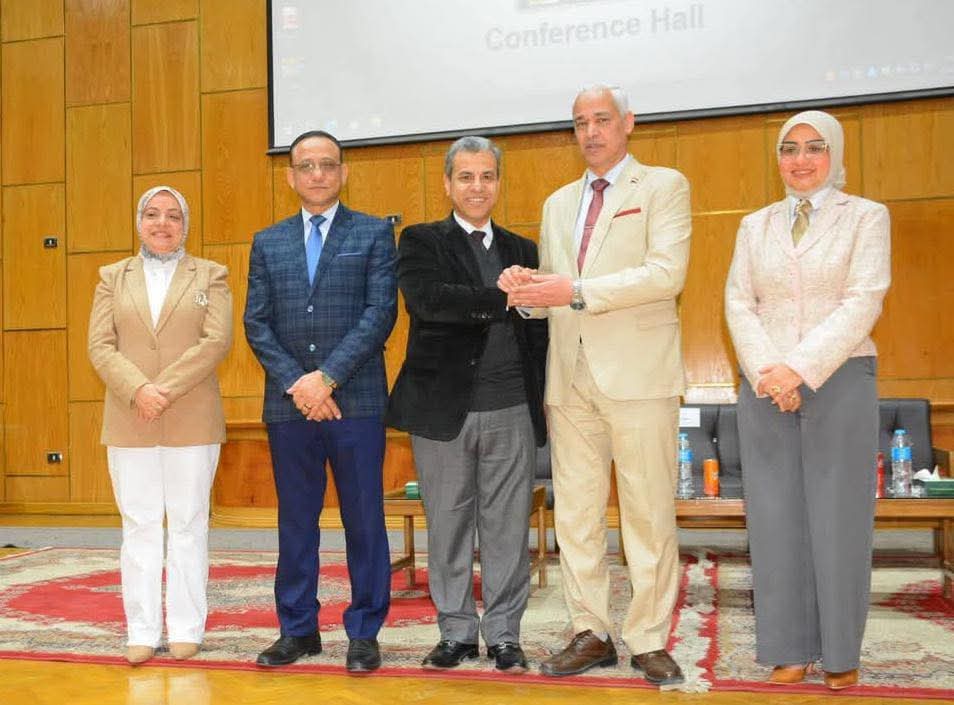 بوفد رفيع المستوى من السادة أعضاء هيئة التدريس والاداريين والطلاب برئاسة ا.د هاني شفيق رمزي وا.د محمود منصور هيبه والدكتورة نشوى حسن مدير رعاية الشباب والأستاذ ابو الحسن خليل مدير شؤن الطلاب